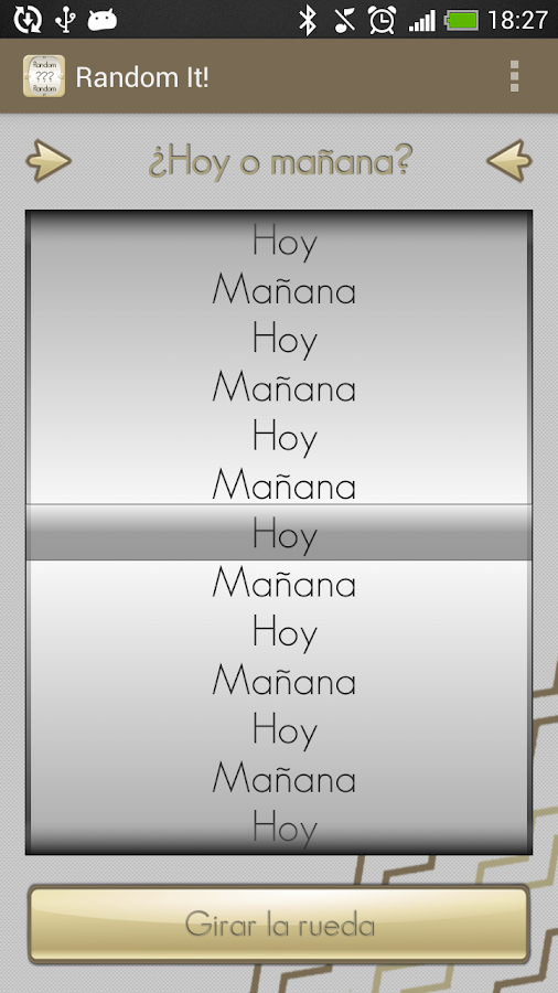 Después de esta introducción tipo televentas debo decir que sí, es casi cierto , existe una app para decidirse y me ha dado un buen rato de entretenimiento. Se llama Random it y funciona como una herramienta para tomar decisiones a la suerte. Se ve como una de esas maquinitas de juegos de casino tipo 777.